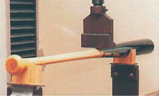 「グラスファイバーあり」のバットは3302N(337kg重)、「グラスファイバーなし」では2958N(302kg重)でバットが折れた。耐久性は「グラスファイバーあり」の方が344N(約35kg重)高いことが分かった。