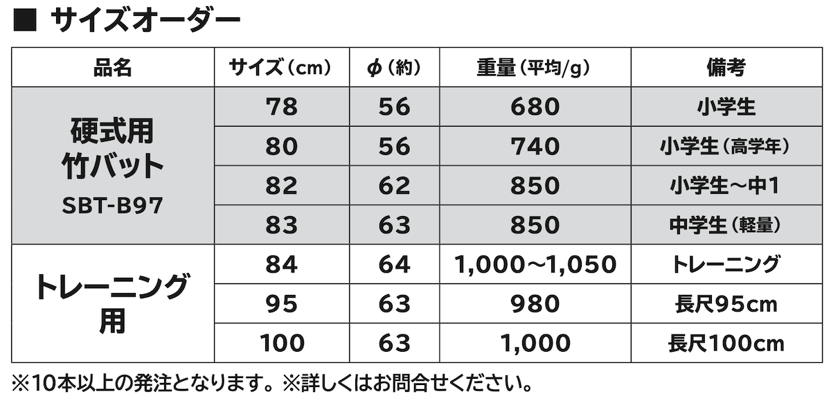 硬式用木製バット